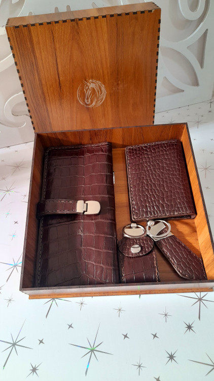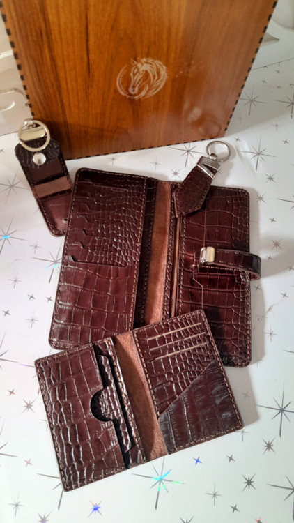ست ۴ تیکه شامل کیف کتی،جاکارتی،جاکلیدی آلبومی،جاسوئیچی،تهیه شده از چرم گاوی طرح روکو