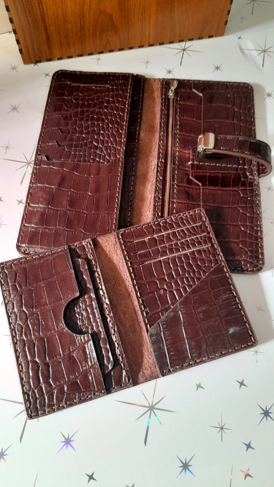 ست ۴ تیکه شامل کیف کتی،جاکارتی،جاکلیدی آلبومی،جاسوئیچی،تهیه شده از چرم گاوی طرح روکو